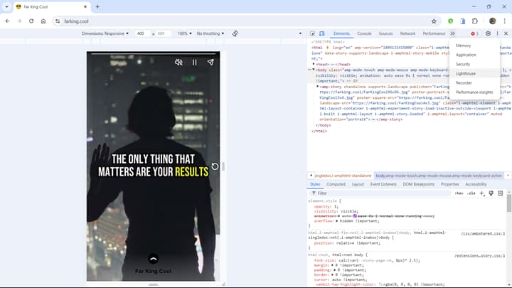 After Lighthouse completes the analysis, scroll down through the report to see detailed insights.
